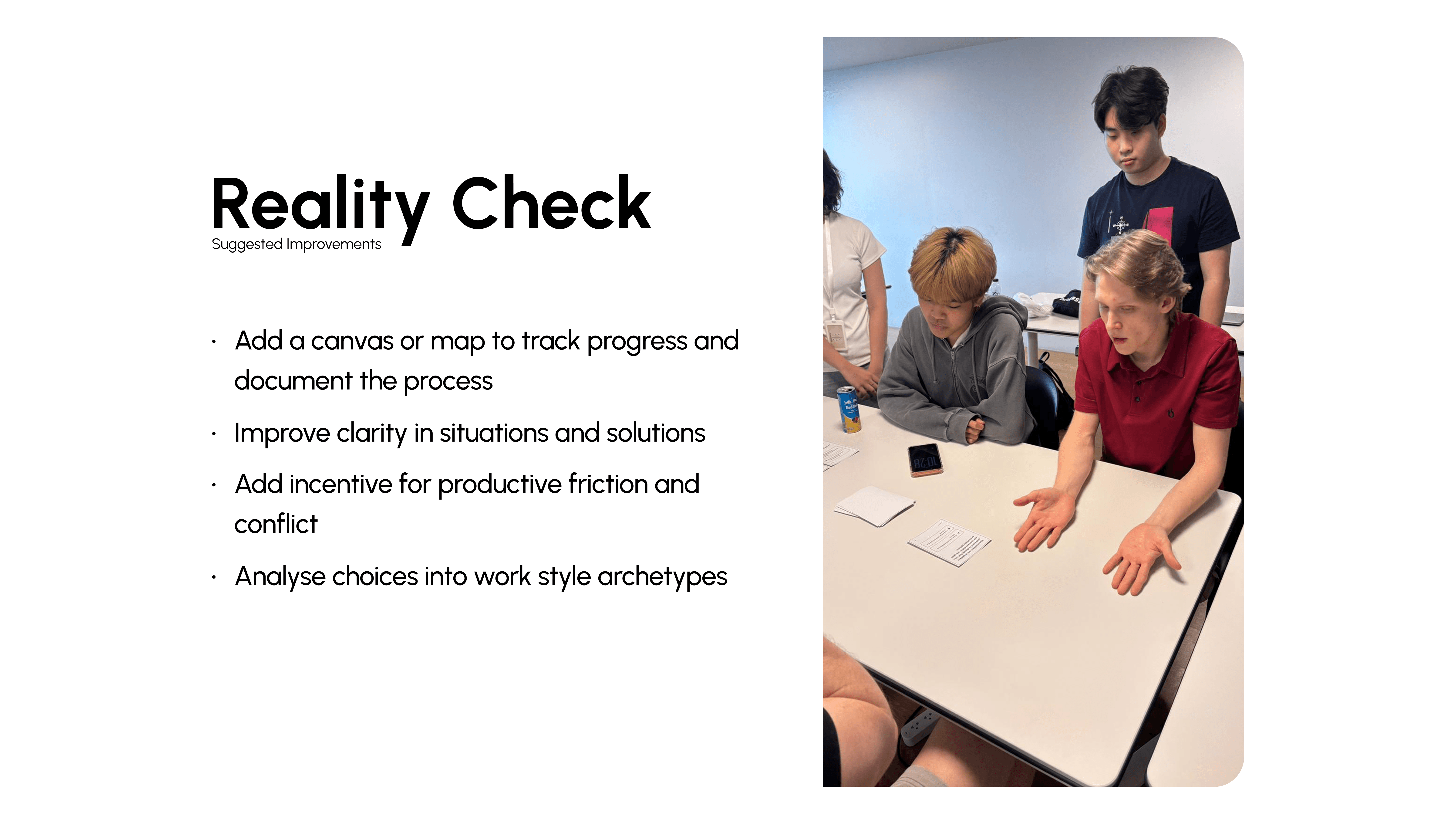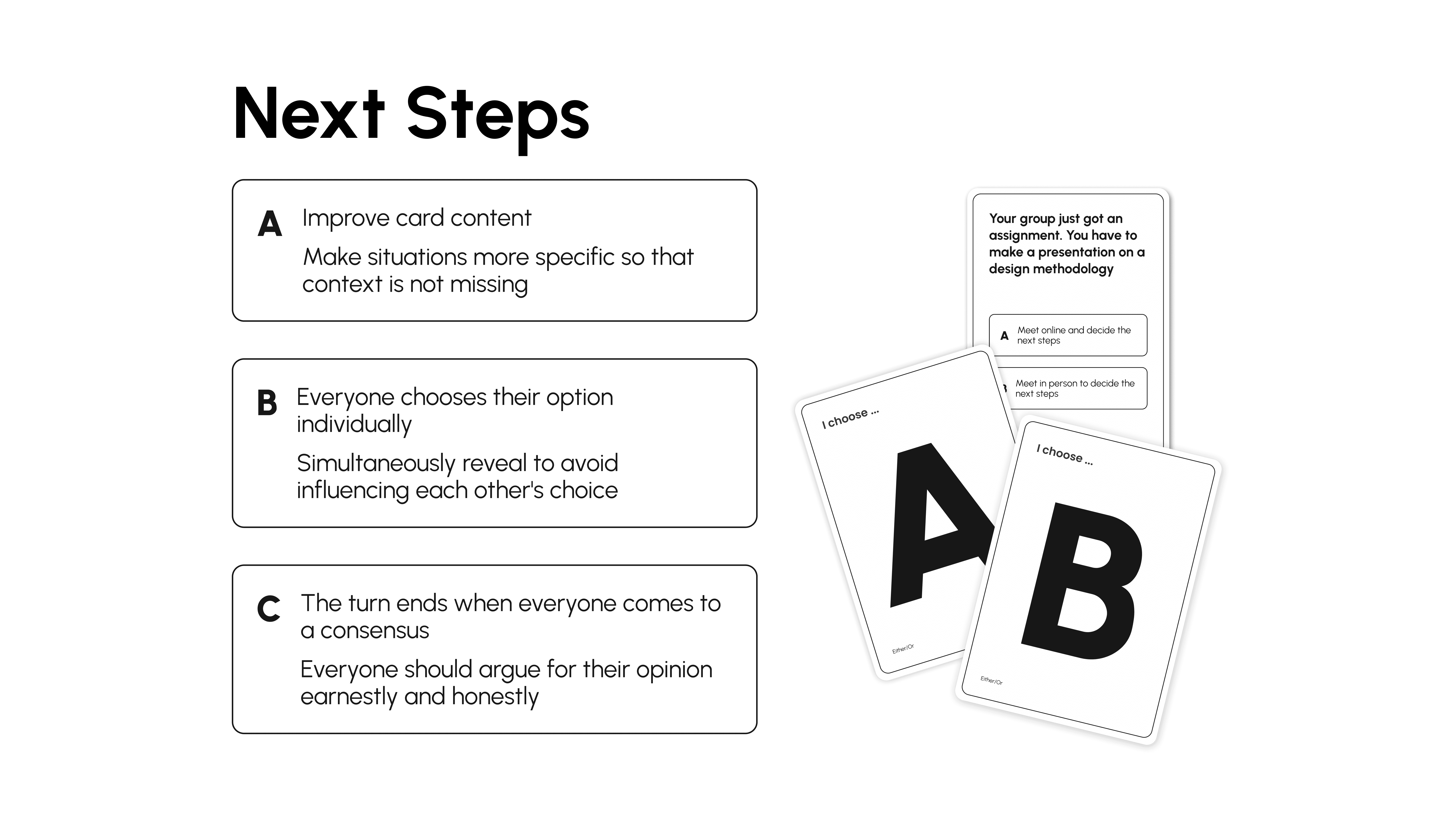 Another challenge was minimizing peer influence during decision-making. Implementing simultaneous reveal helped preserve independent thought.