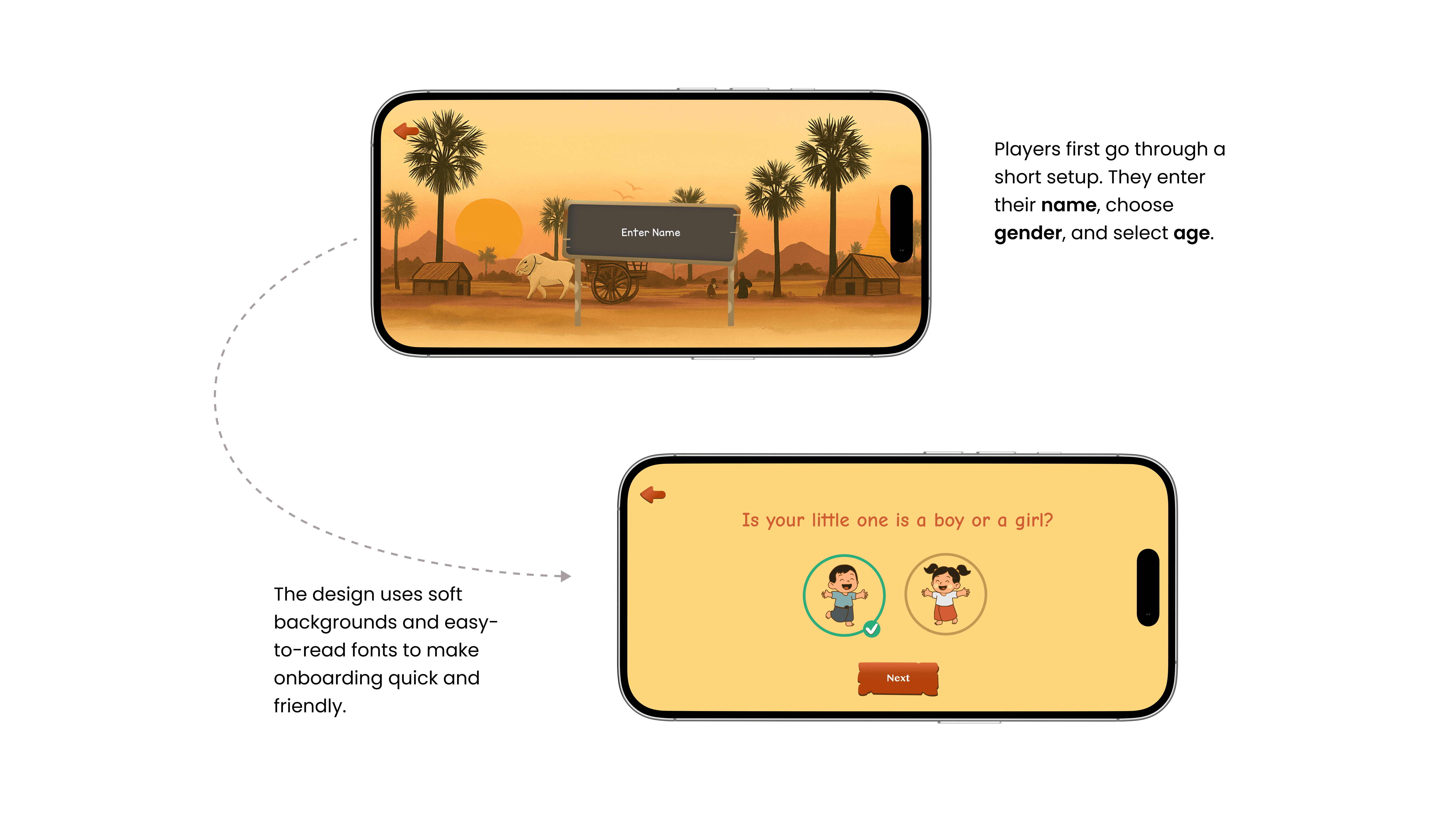 The design emphasizes accessibility, simplicity, and emotional warmth to support a positive first digital learning experience.